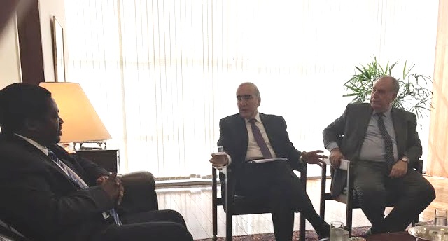 | Balozi Nchimbi (kushoto) akizungumza na Katibu Mkuu wa Wizara ya Mambo ya Mambo ya Nje ya Brazil mara baada ya kuwasili Wizarani hapo kwa utambulisho. |