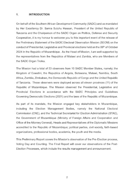 PRELIMINARY STATEMENT BY HIS EXCELLENCY DR. AMANI ABEID KARUME, FORMER PRESIDENT OF ZANZIBAR AND HEAD OF THE SADC ELECTORAL OBSERVATION MISSION (SEOM) TO THE PRESIDENTIAL, LEGISLATIVE AND PROVINCIAL ELECTIONS IN THE REPUBLIC OF MOZAMBIQUE