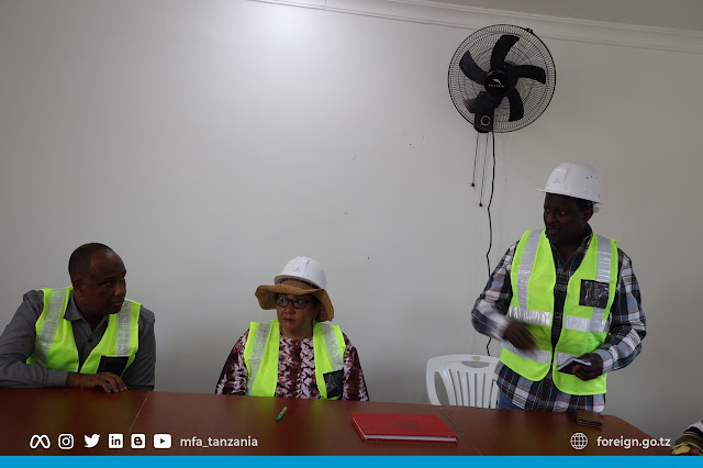 Sehemu ya Wakurugenzi katika Wizara ya Mambo ya Nje na Ushirikiano wa Afrika Mashariki wamsikiliza Mhe. Dkt. Tax wakati wa ziara yake ya ukaguzi wa maendeleo ya ujenzi wa jengo la Wizara katika Mji wa Serijkali Mtumba .jpg)